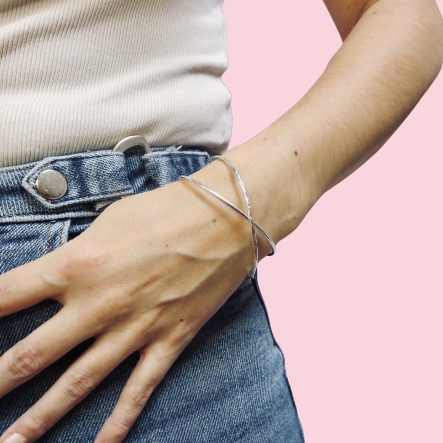 La Manchette Emmy de la collection Les Intemporels en argent 925, confectionné à la main dans mon atelier.