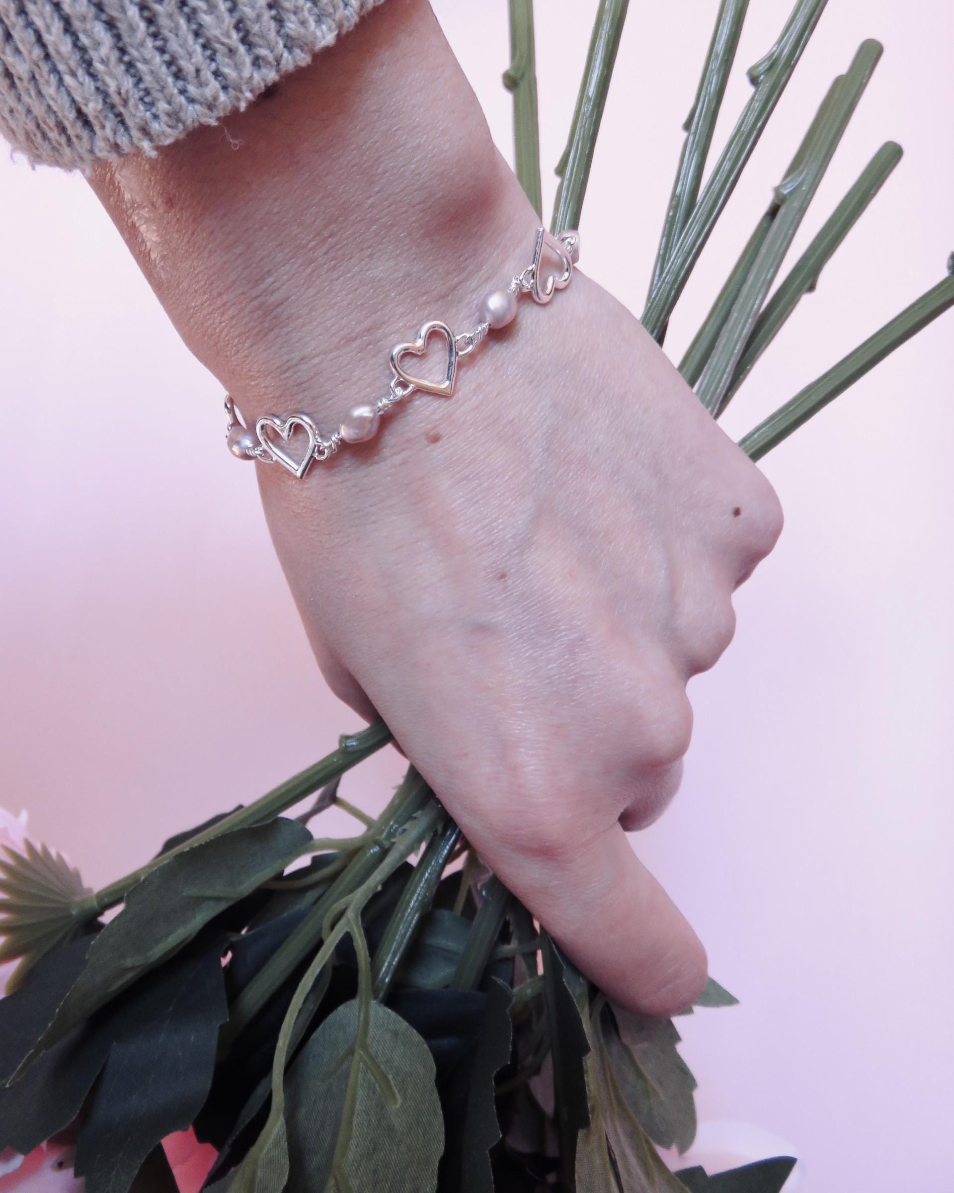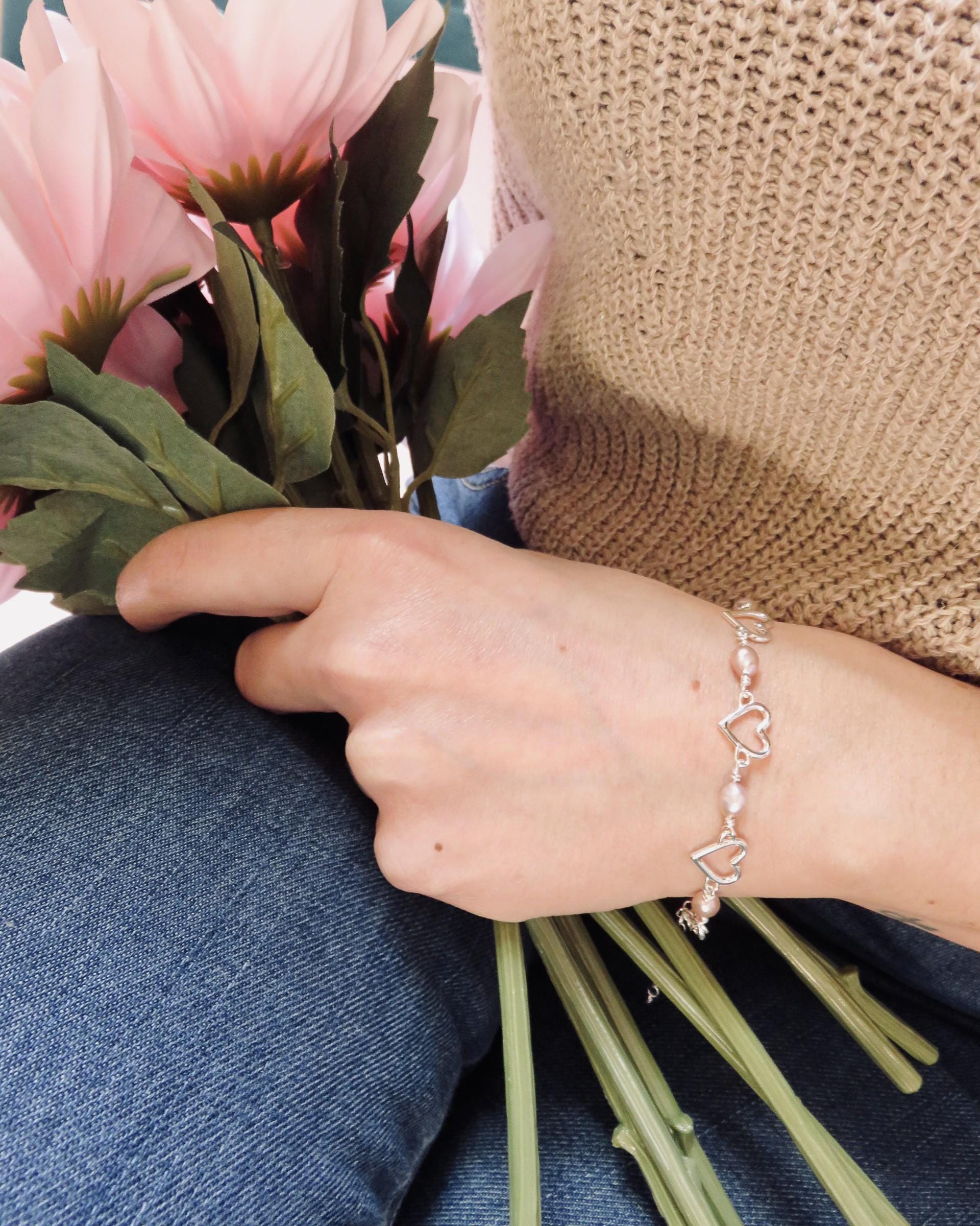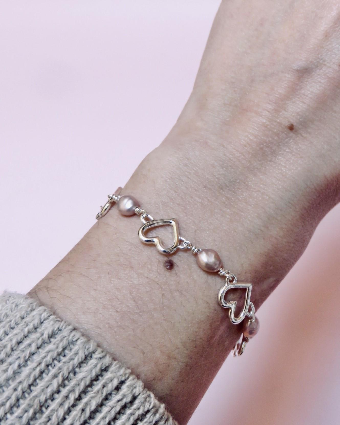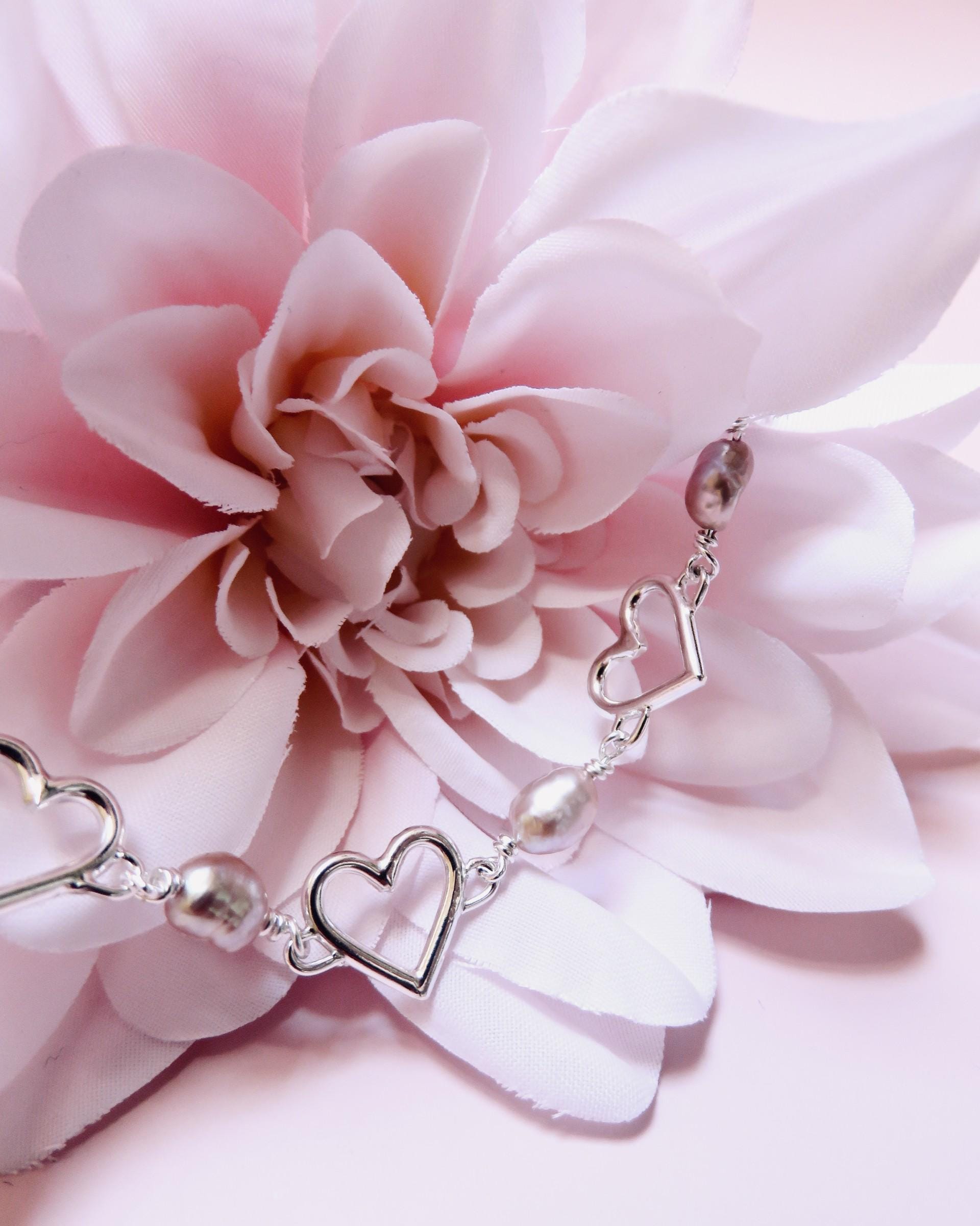 Bracelet Lila, de la collection Serments d'Argent, en argent 925 avec des perles d'eau douce (perle de culture), confectionné à la main dans mon atelier.