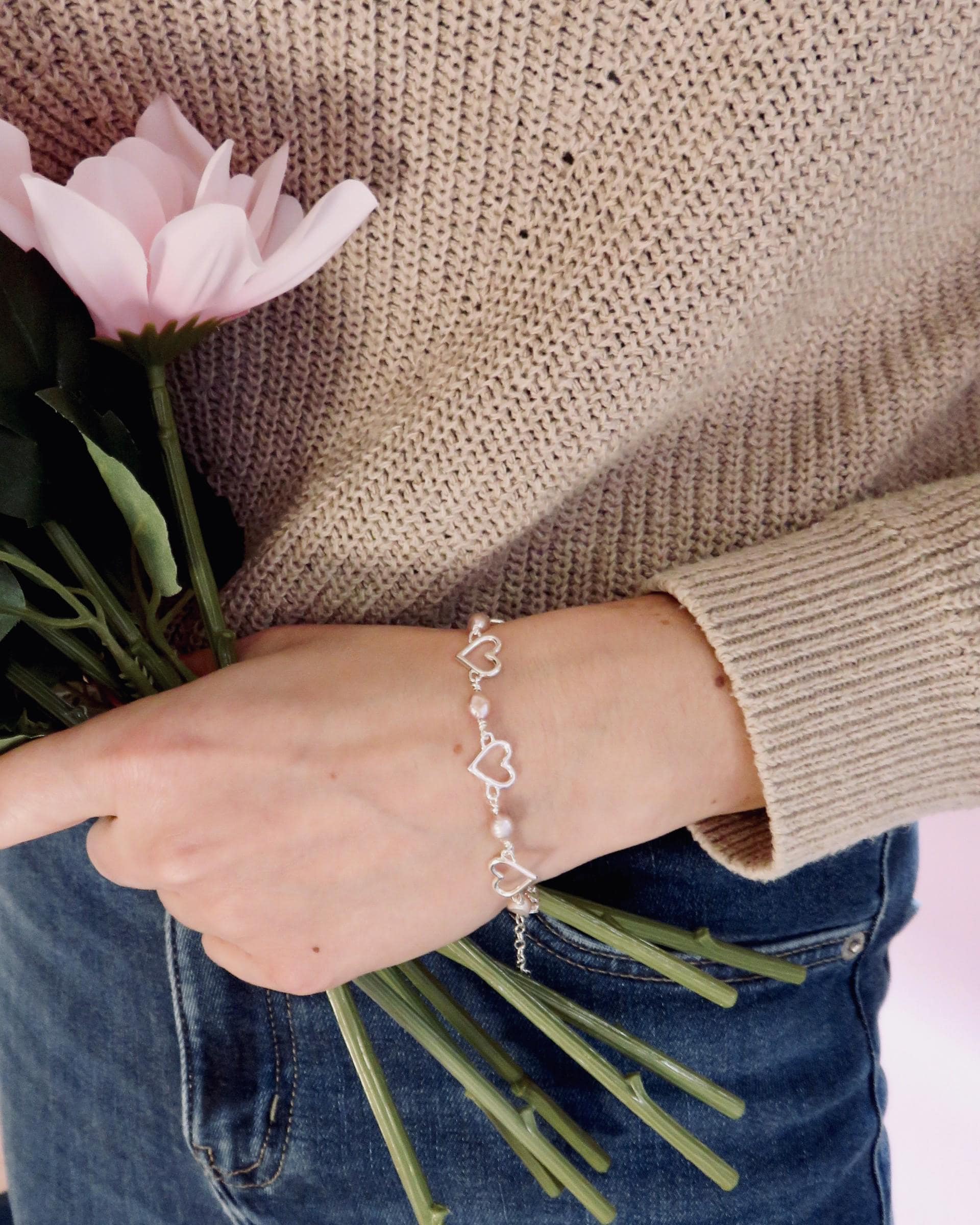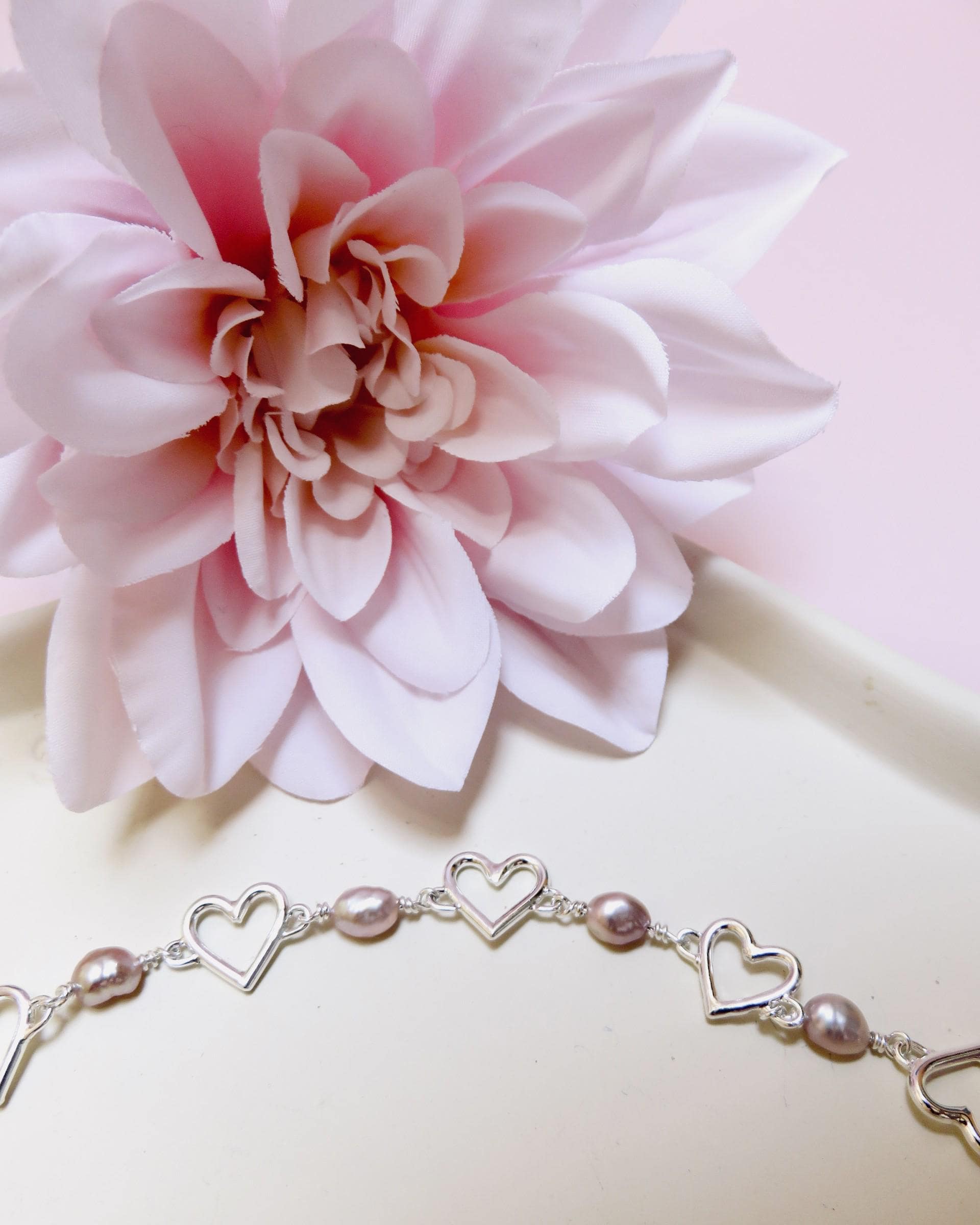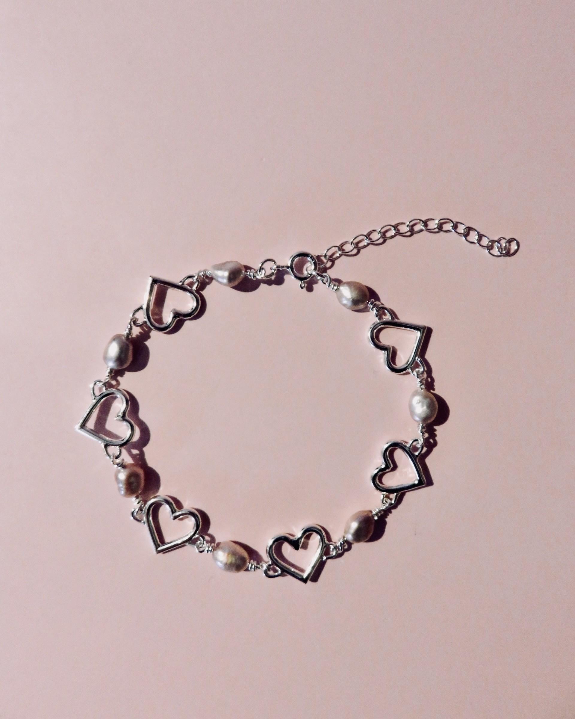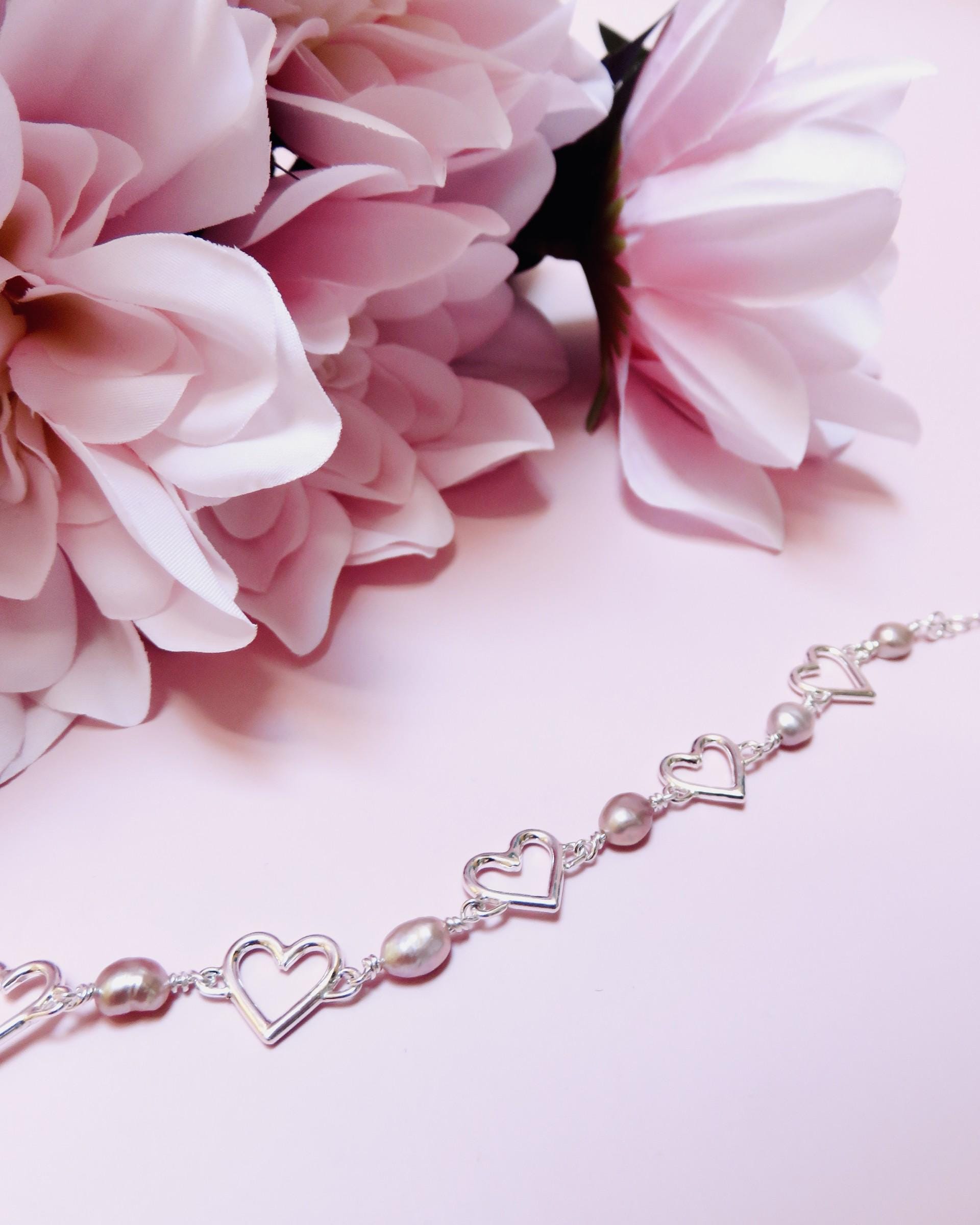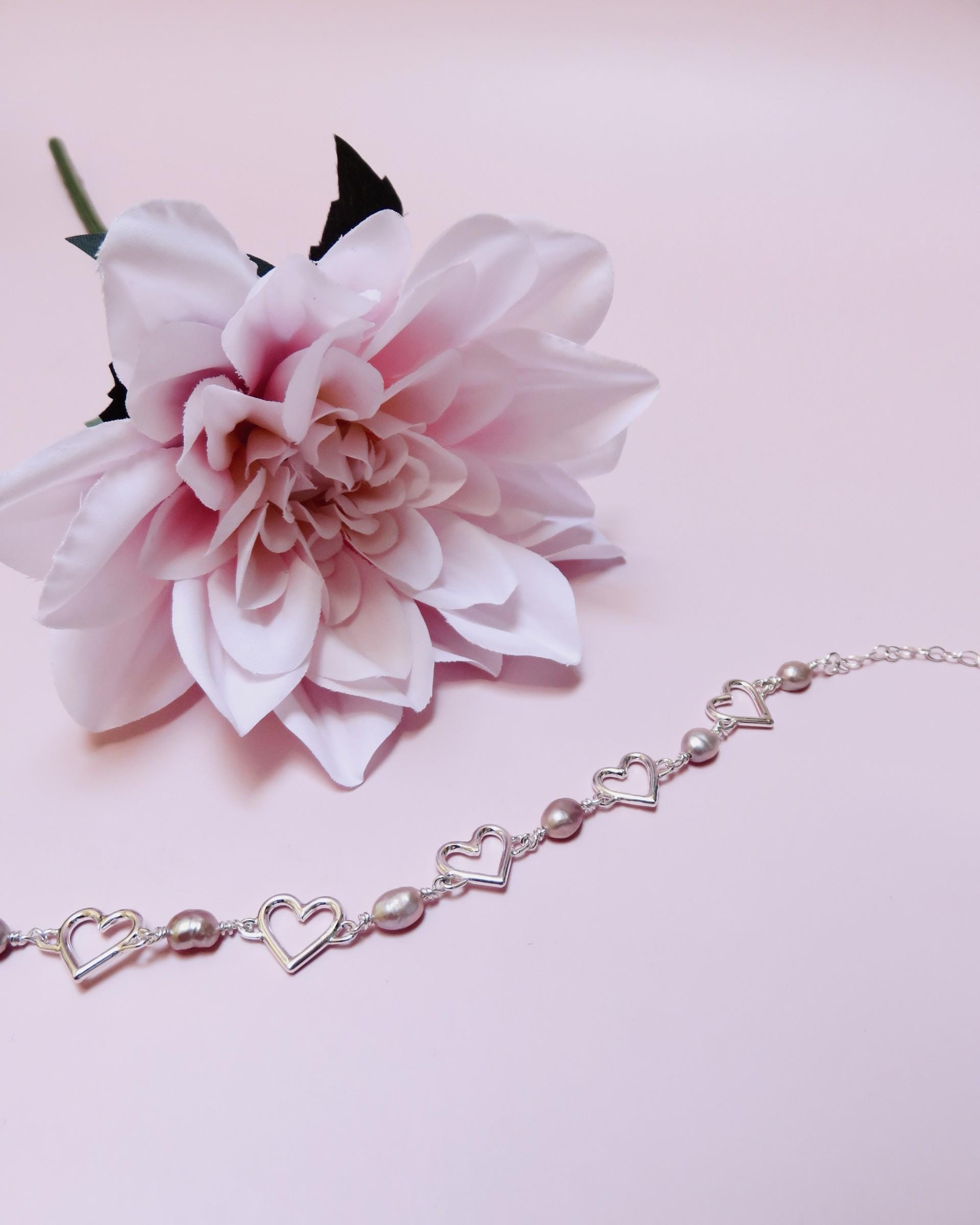 Bracelet Lila, de la collection Serments d'Argent, en argent 925 avec des perles d'eau douce (perle de culture), confectionné à la main dans mon atelier.