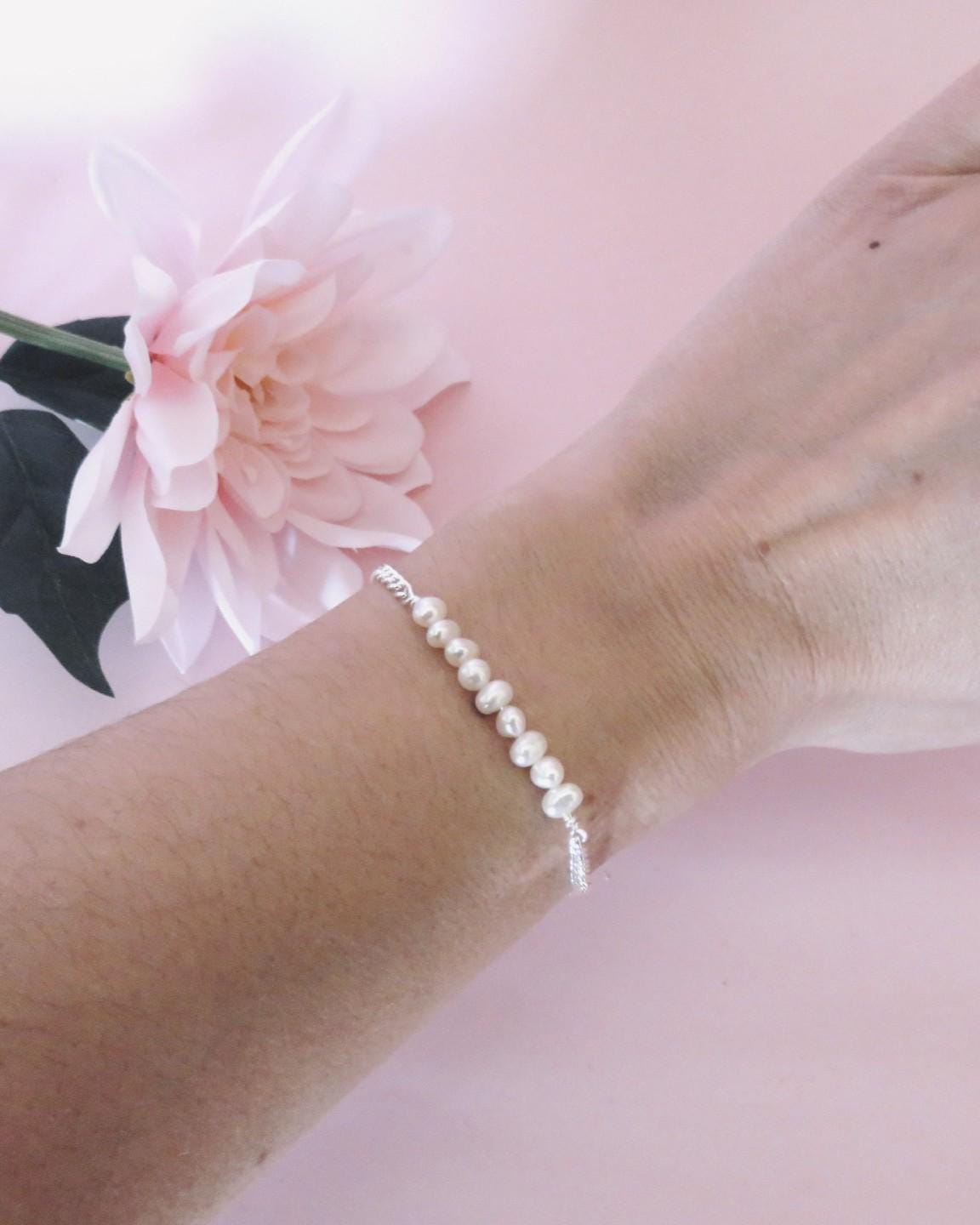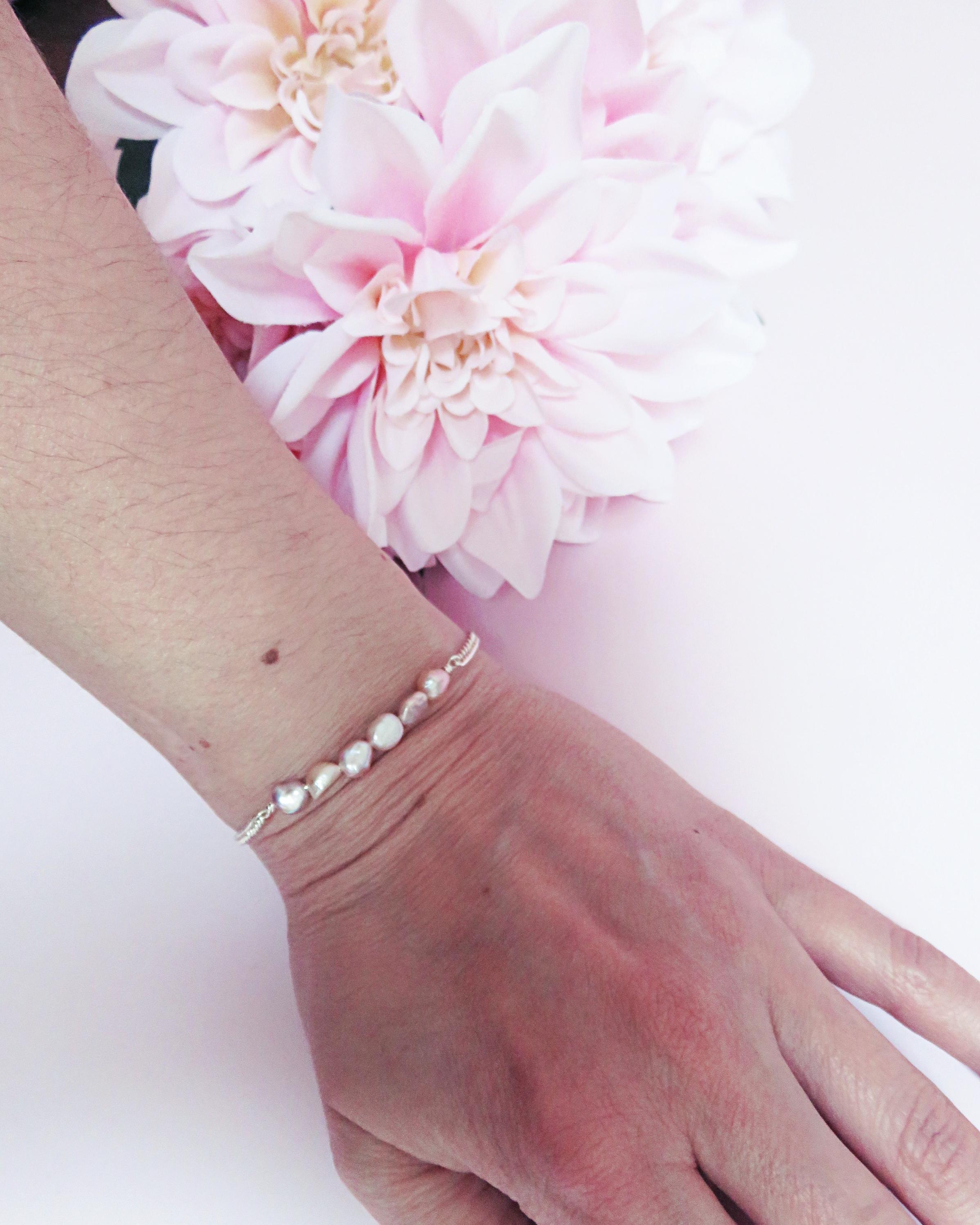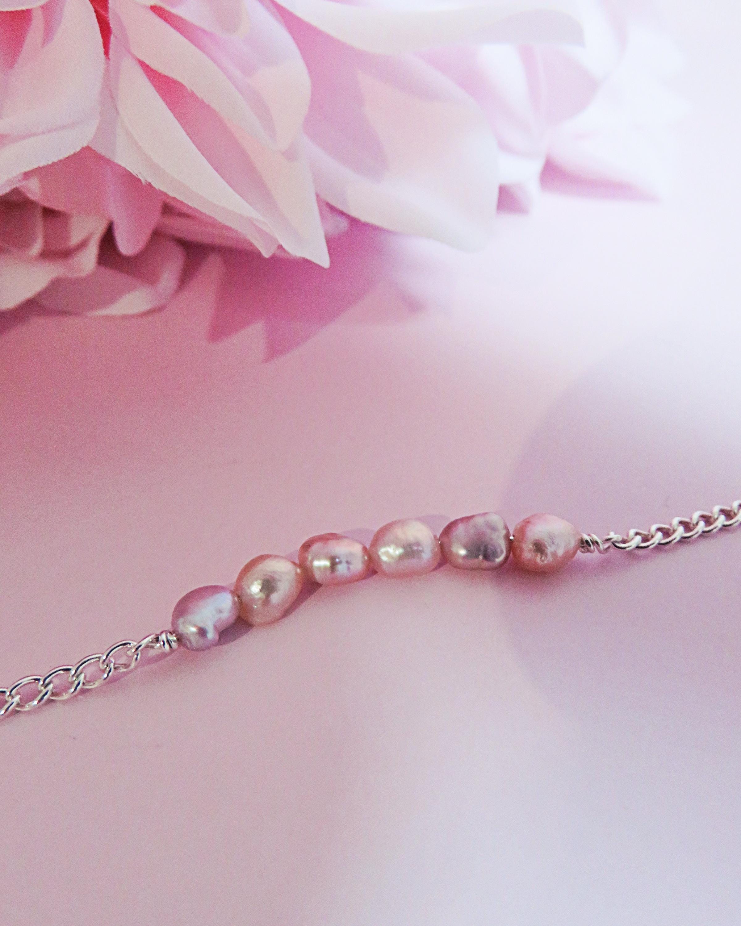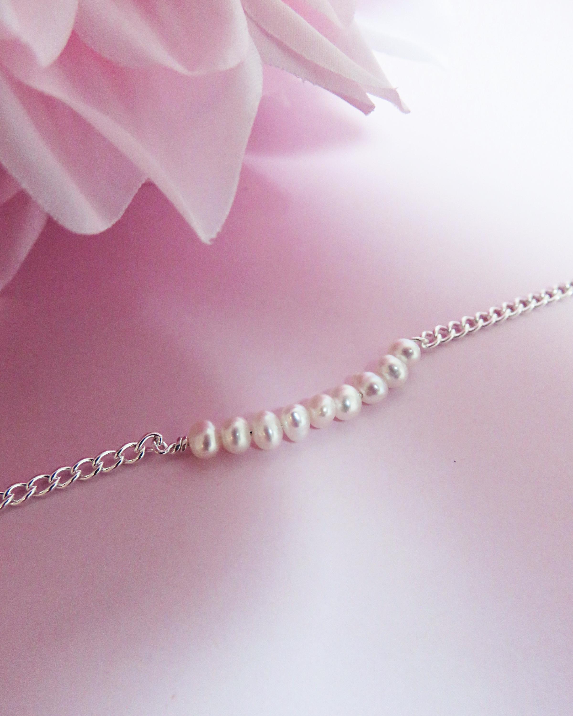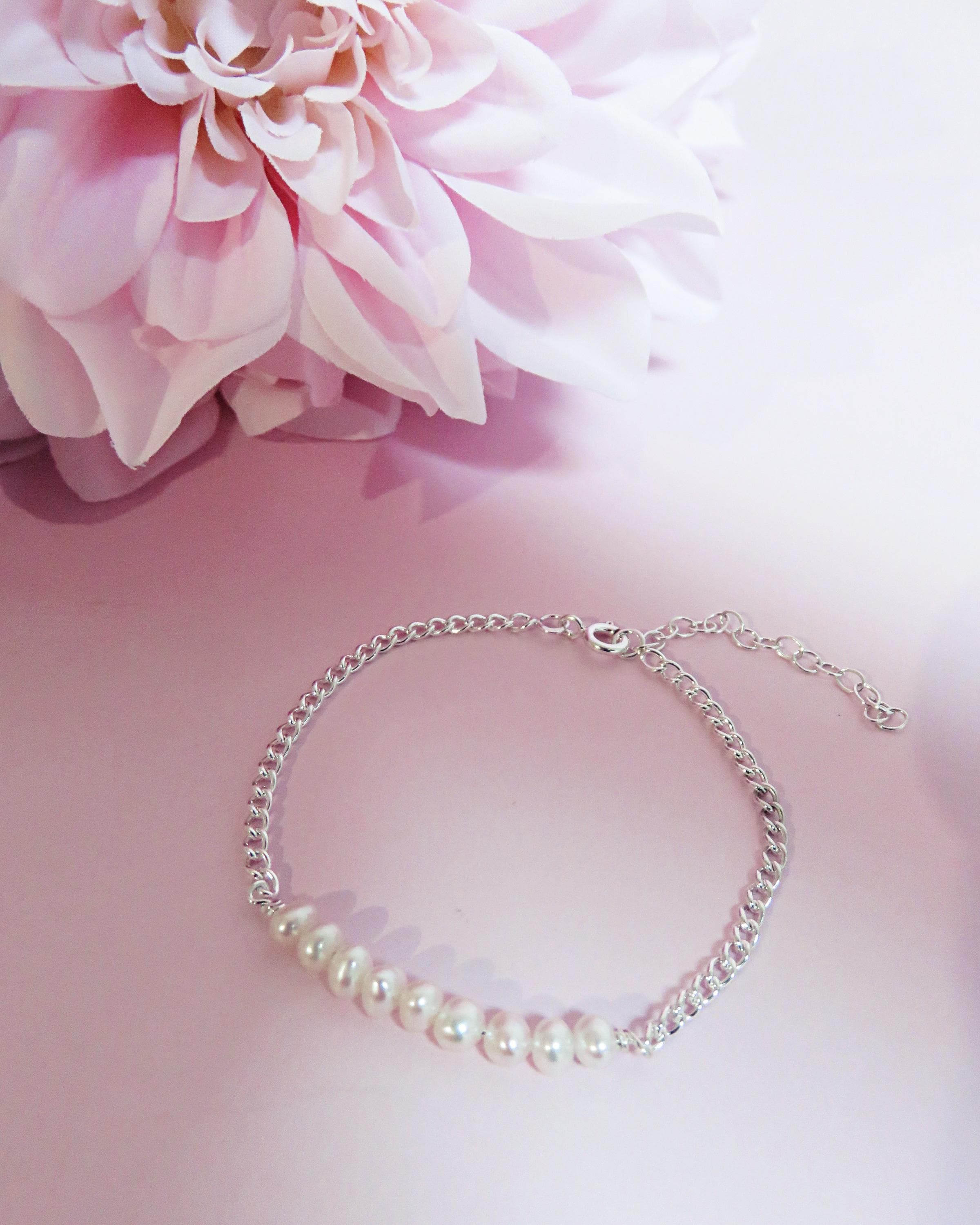 Un bracelet fin et lumineux, composé de véritables perles d’eau douce montées sur une chaîne en argent 925.
