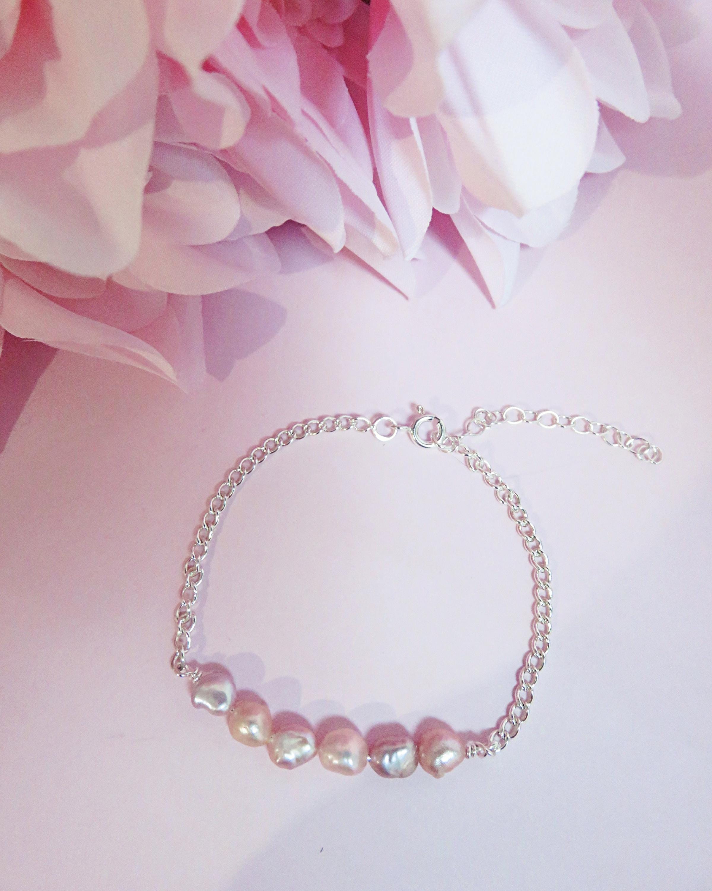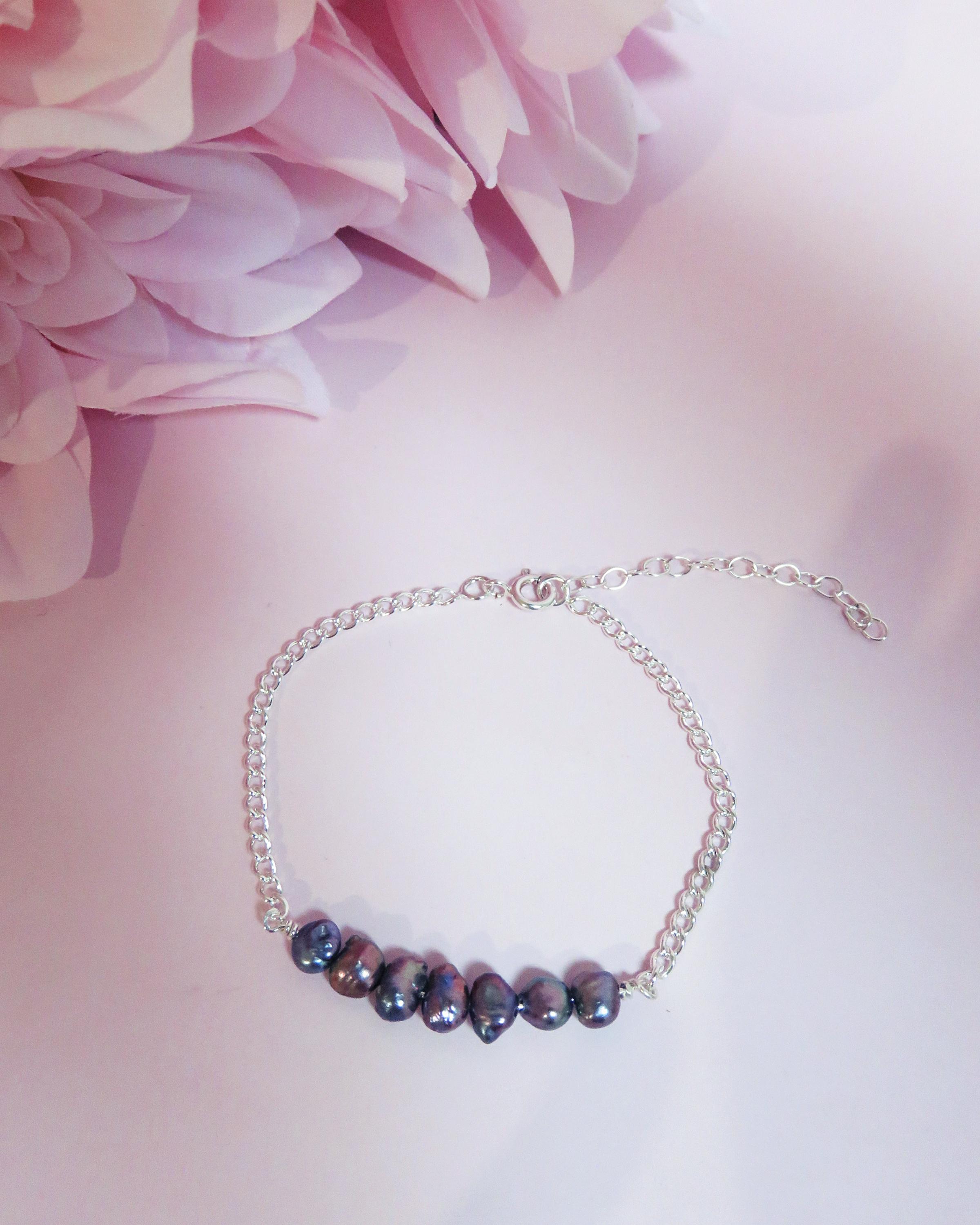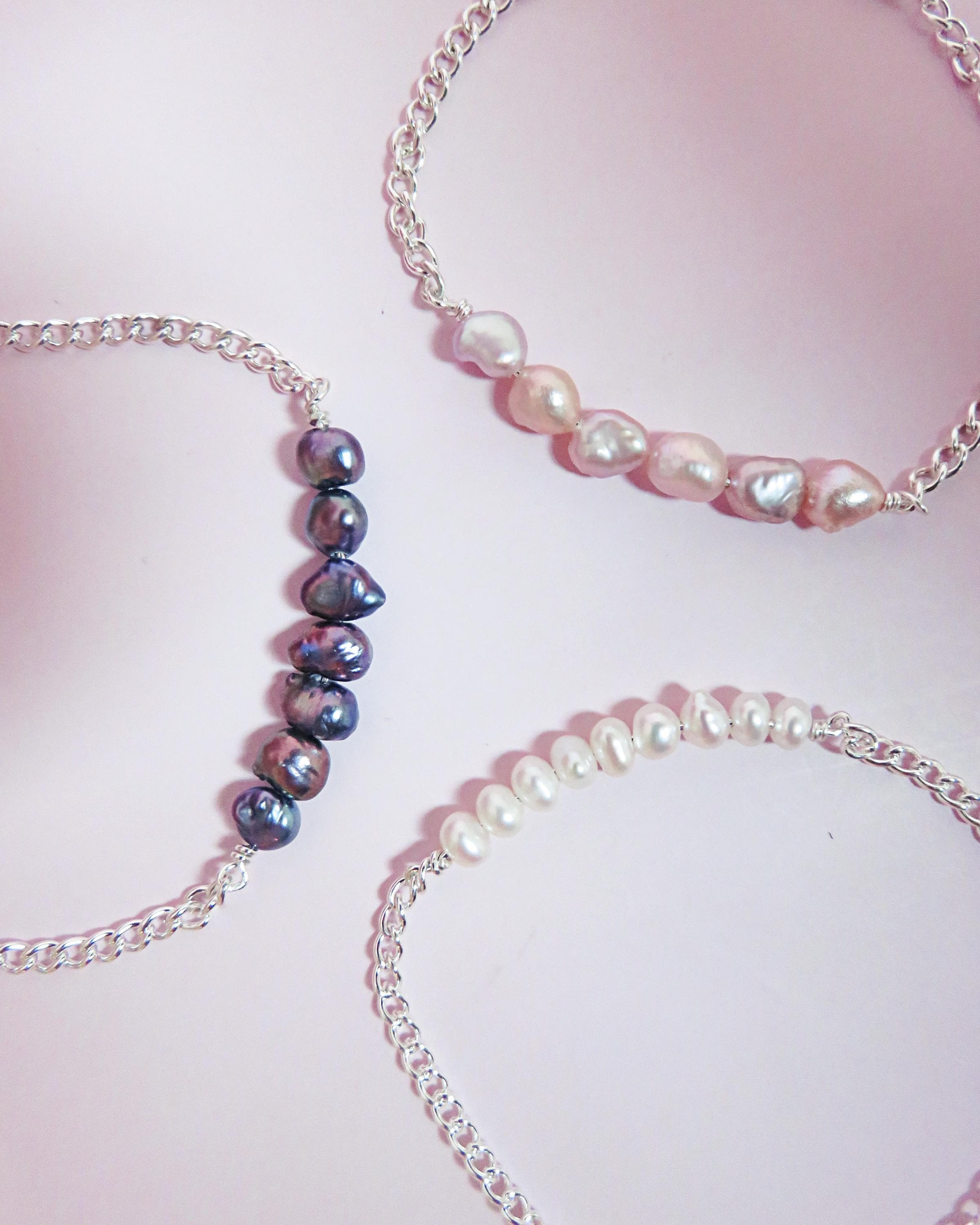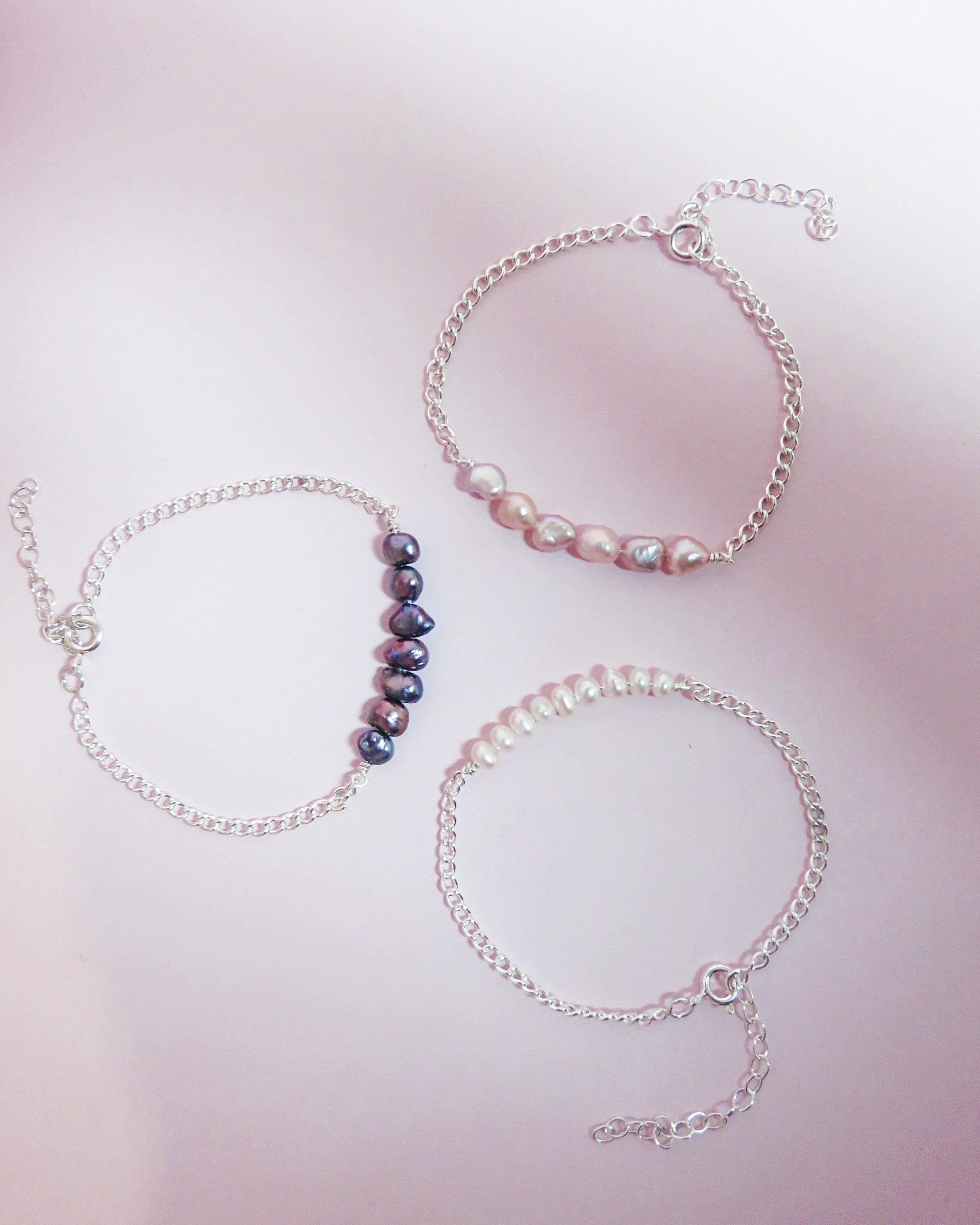 Un bracelet fin et lumineux, composé de véritables perles d’eau douce montées sur une chaîne en argent 925.