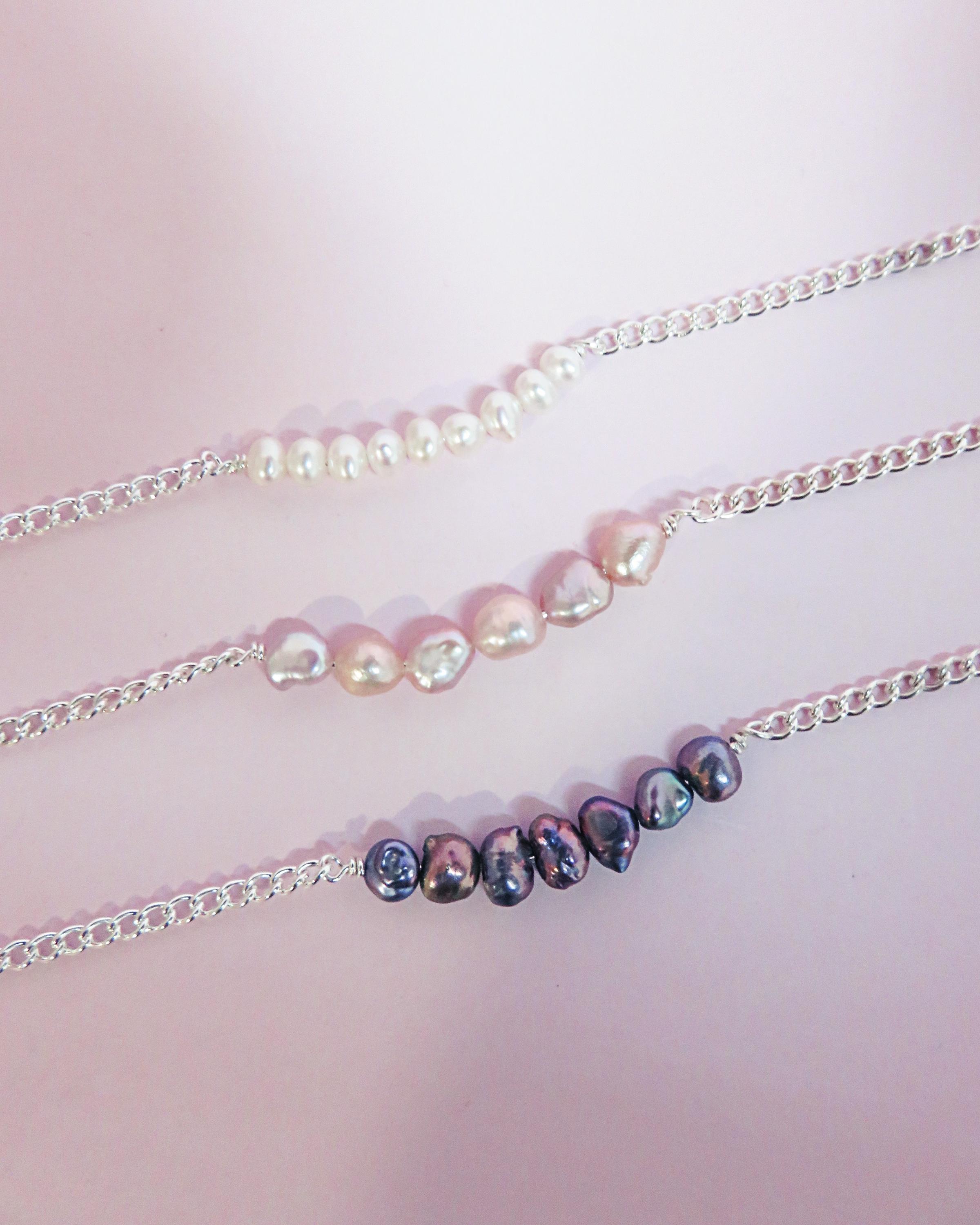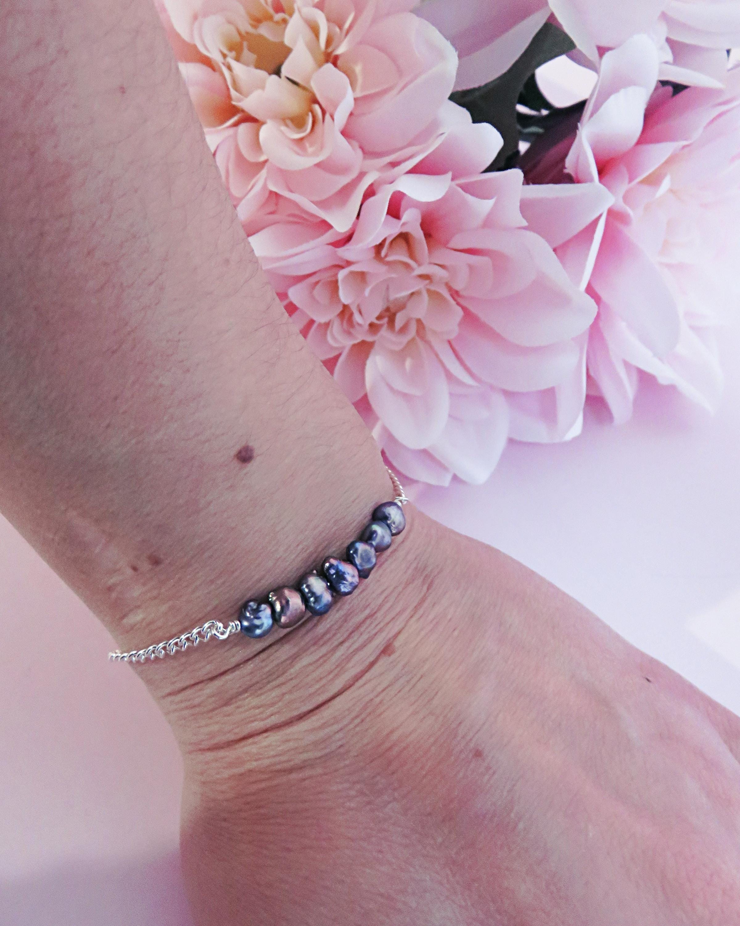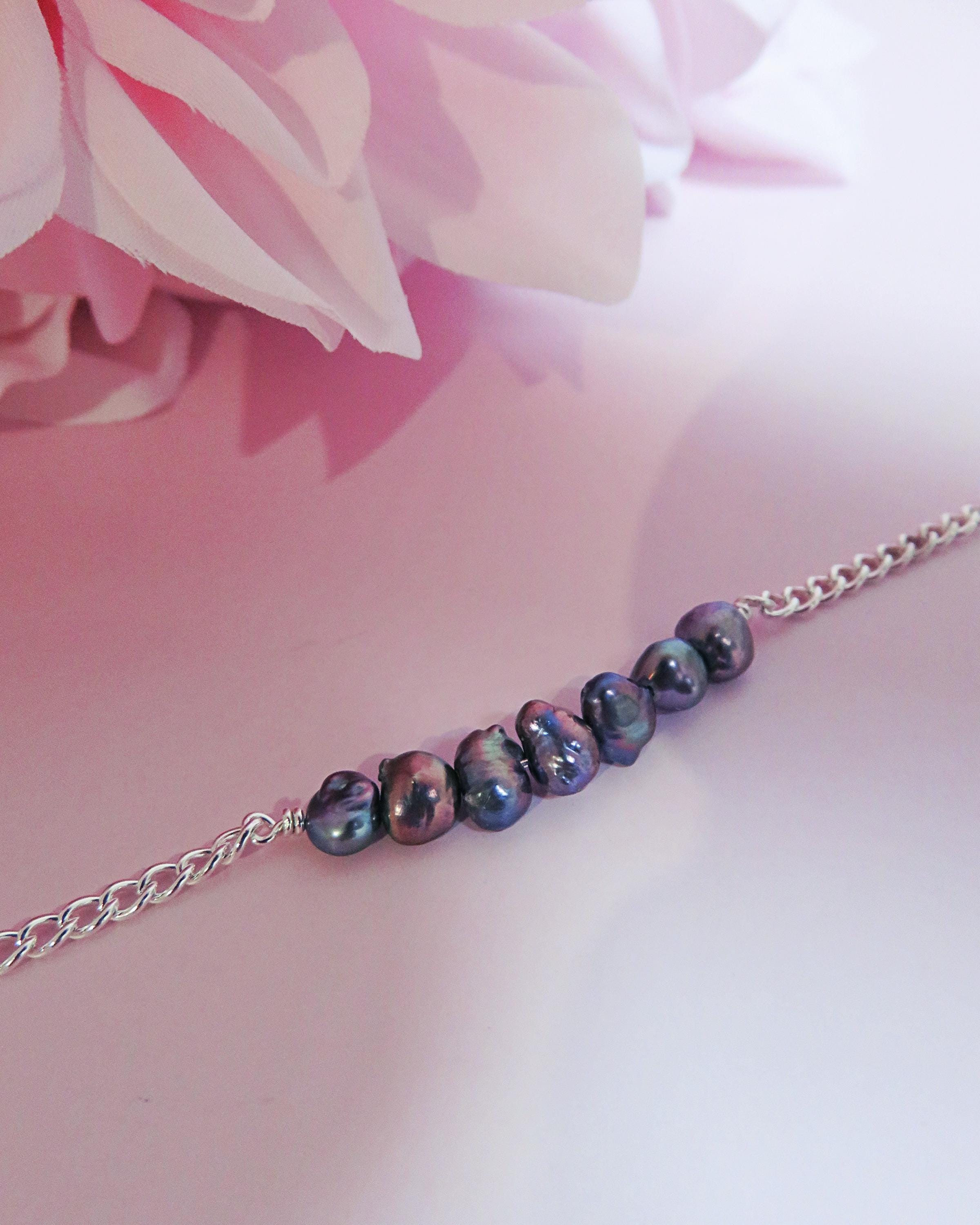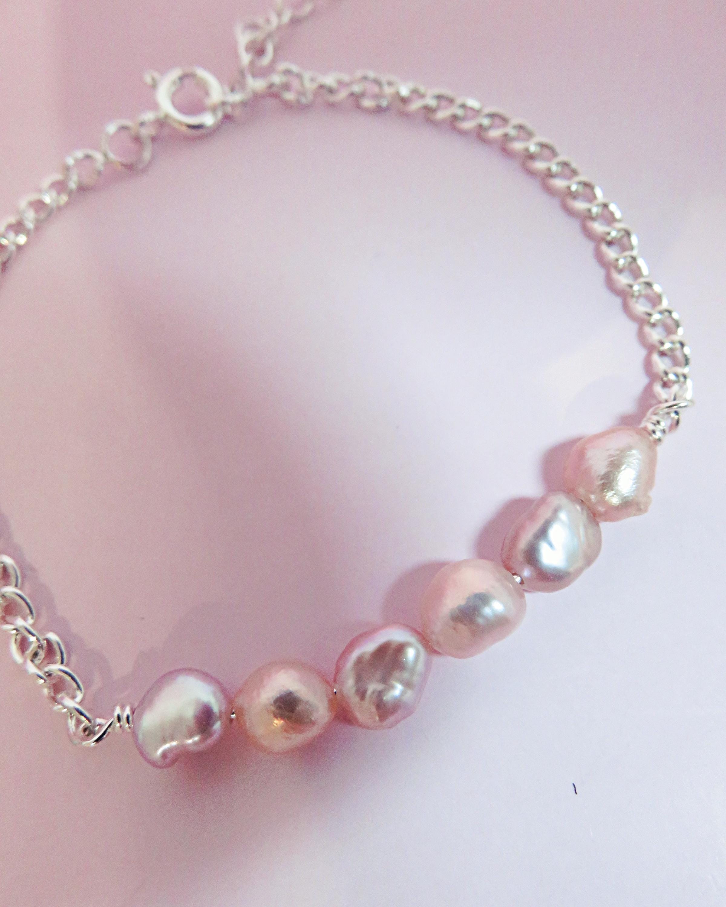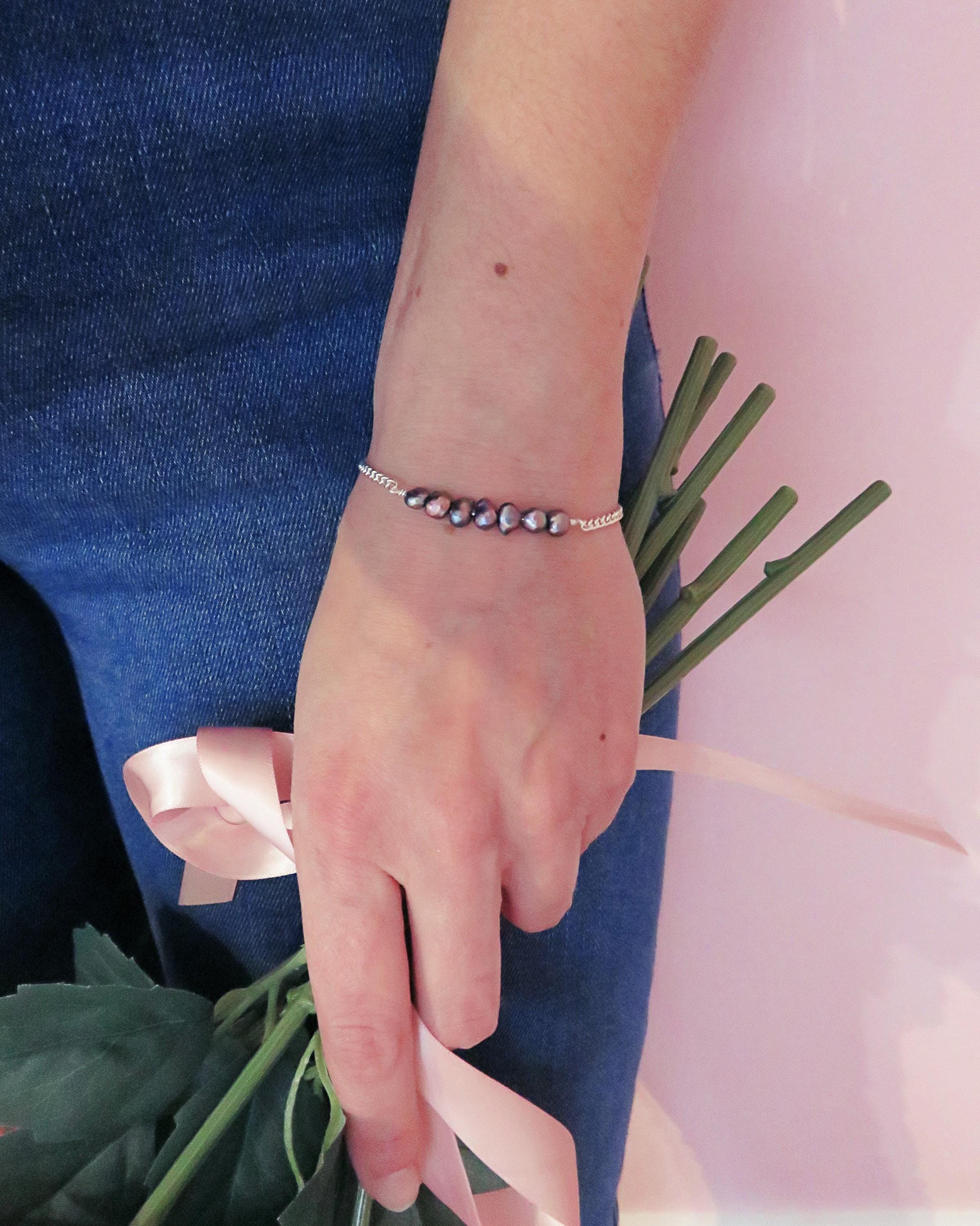 Un bracelet fin et lumineux, composé de véritables perles d’eau douce montées sur une chaîne en argent 925.