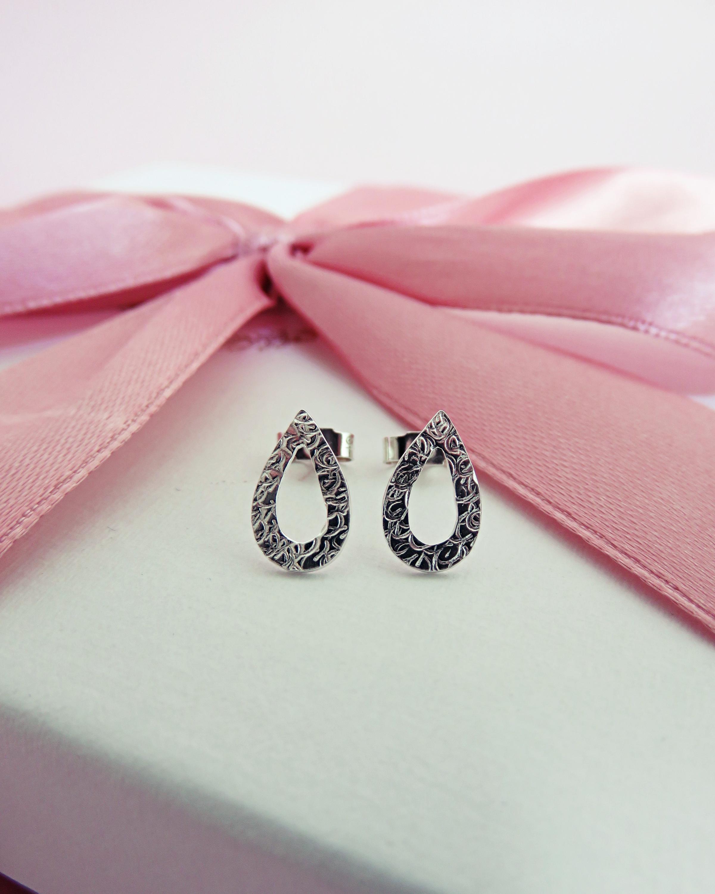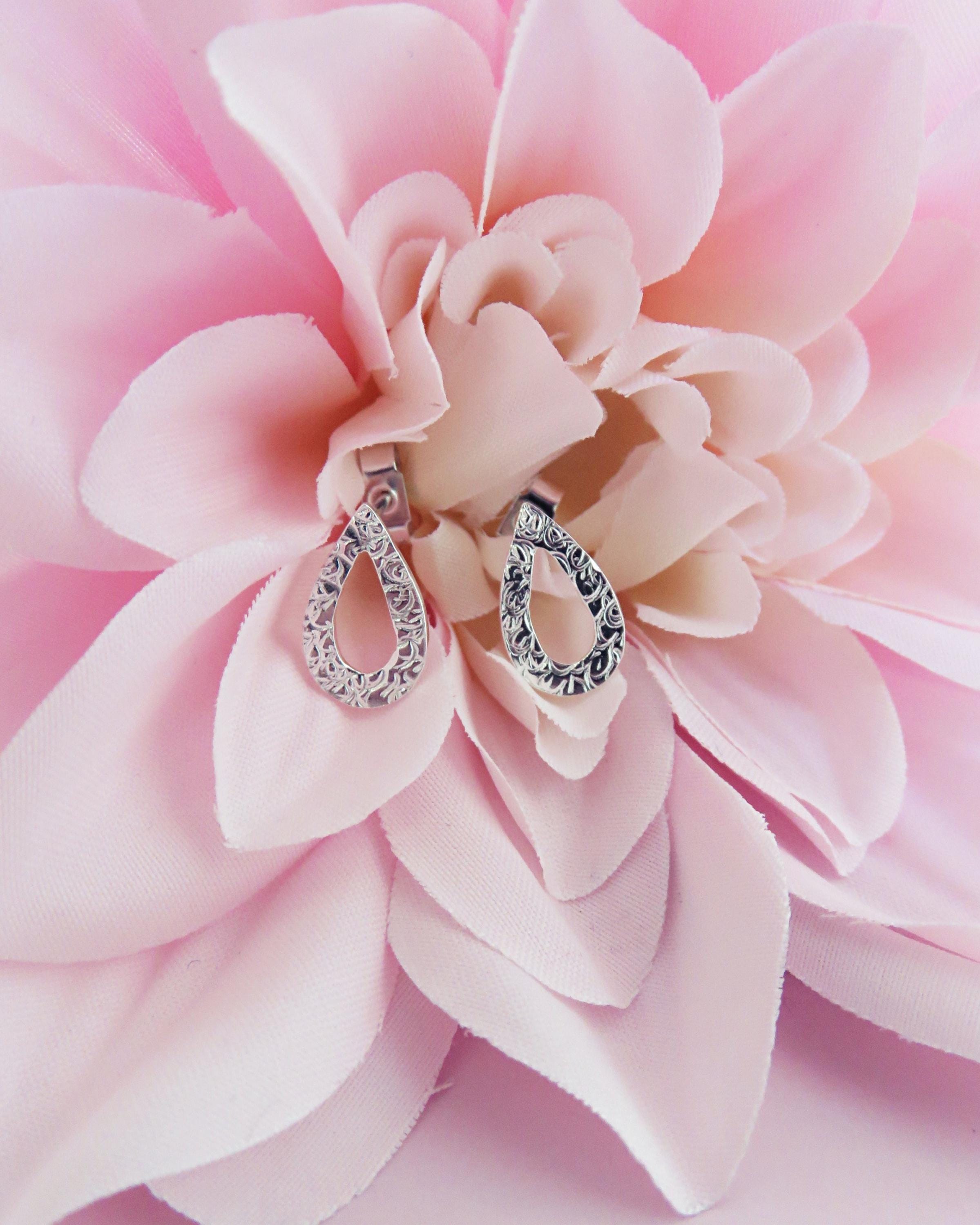 Une forme goutte délicatement ajourée, pure et élancée, qui laisse passer la lumière et souligne le visage avec finesse.