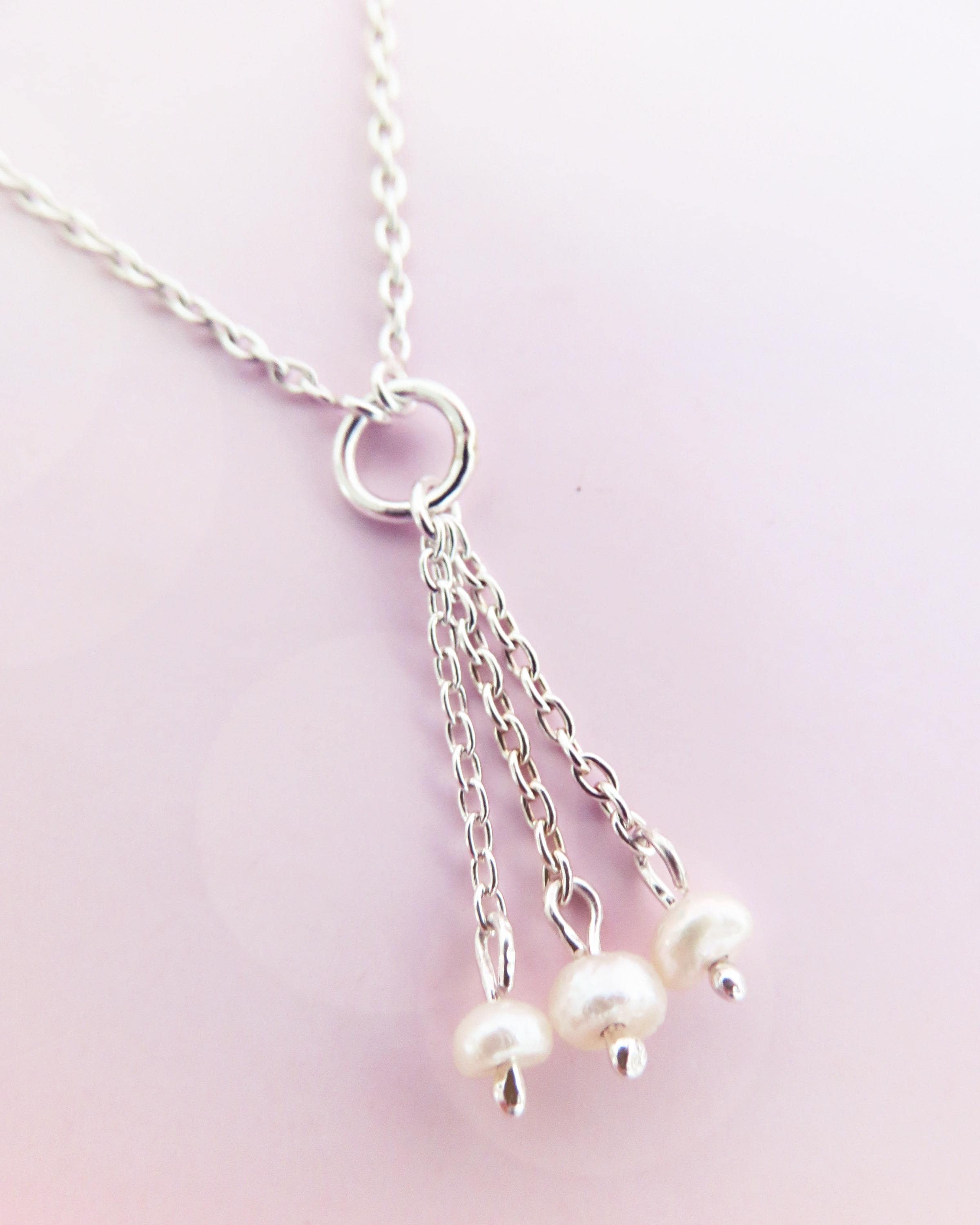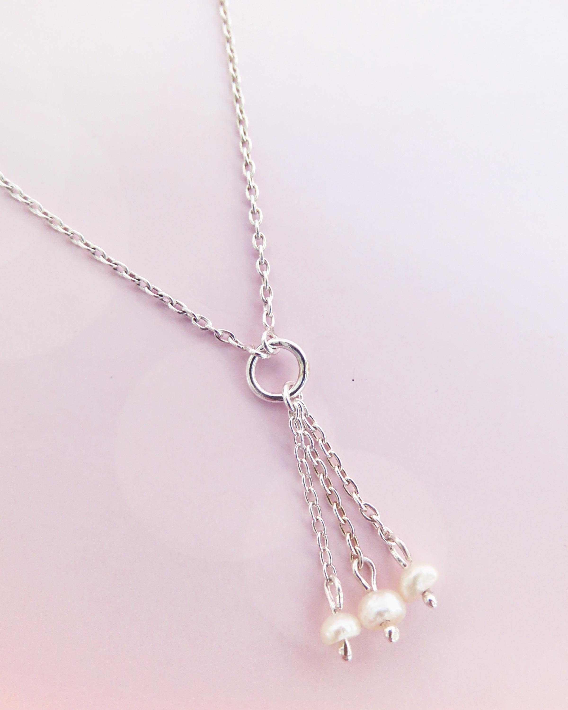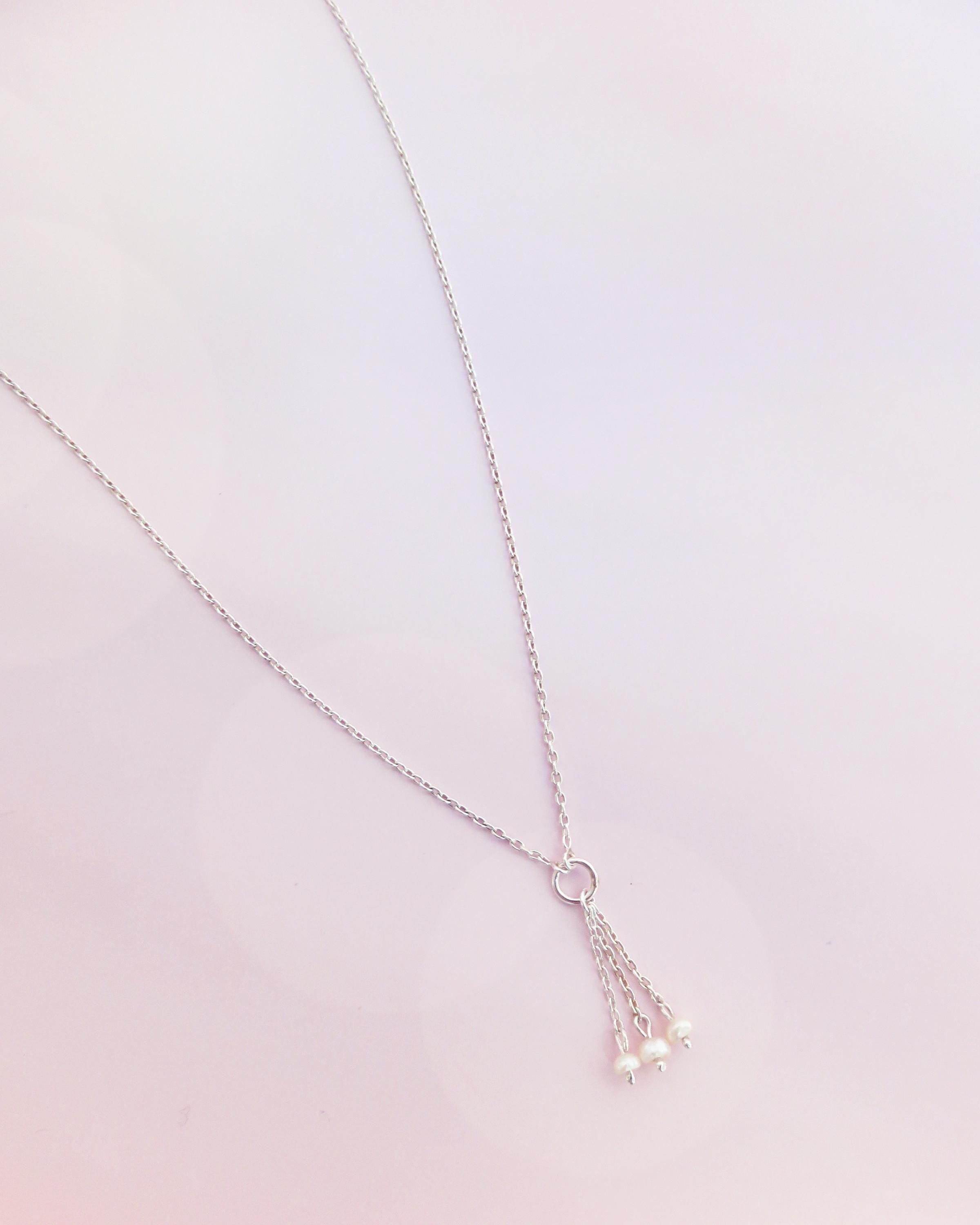 Une chaîne en argent 925 vient se rejoindre sur un anneau central, duquel tombent trois fines pendeloques.