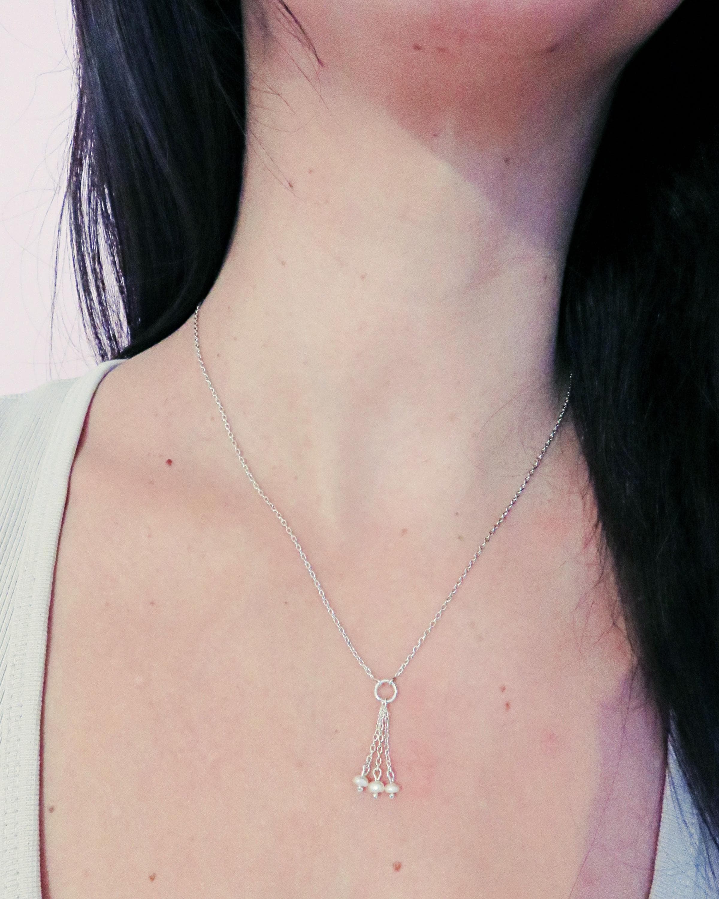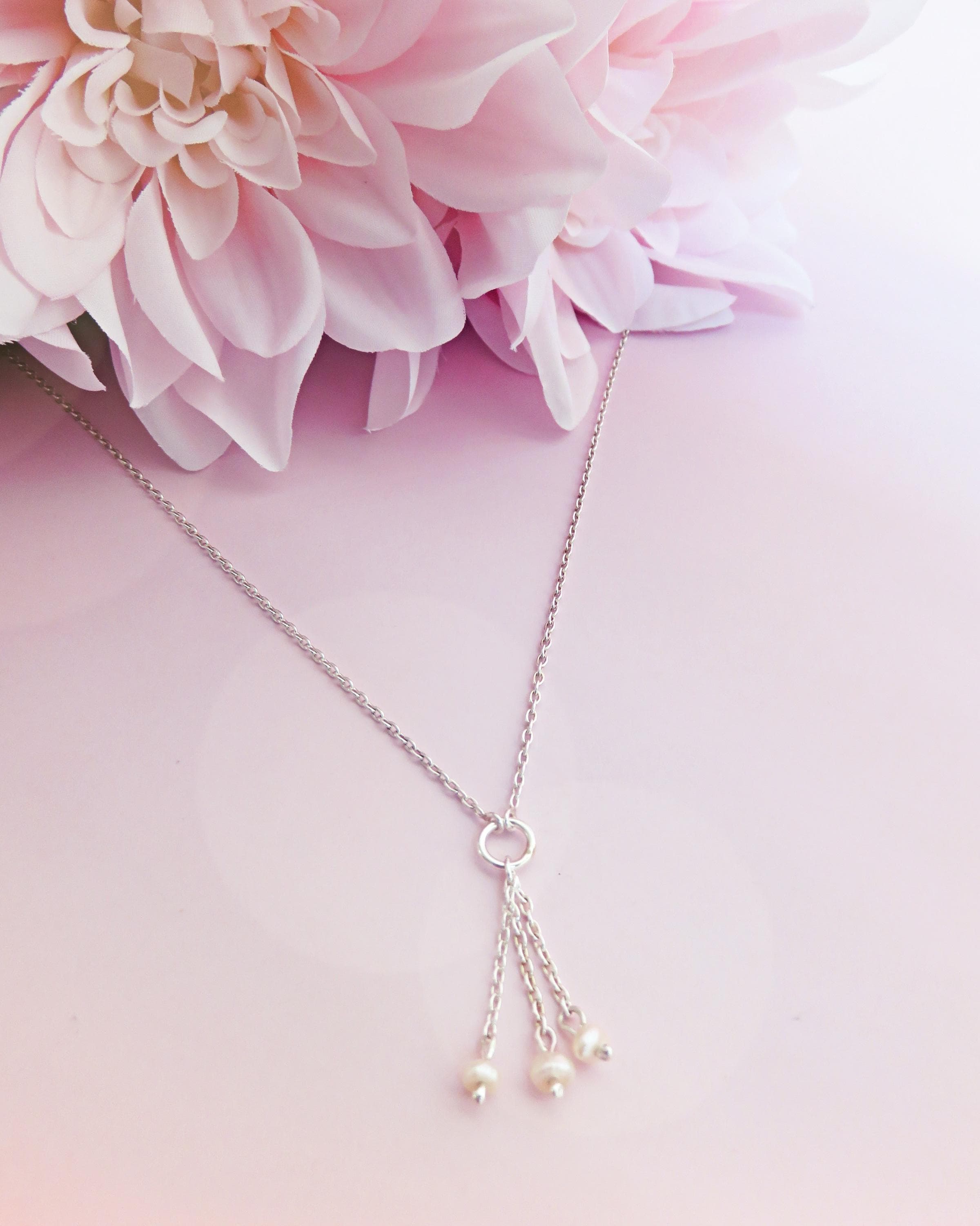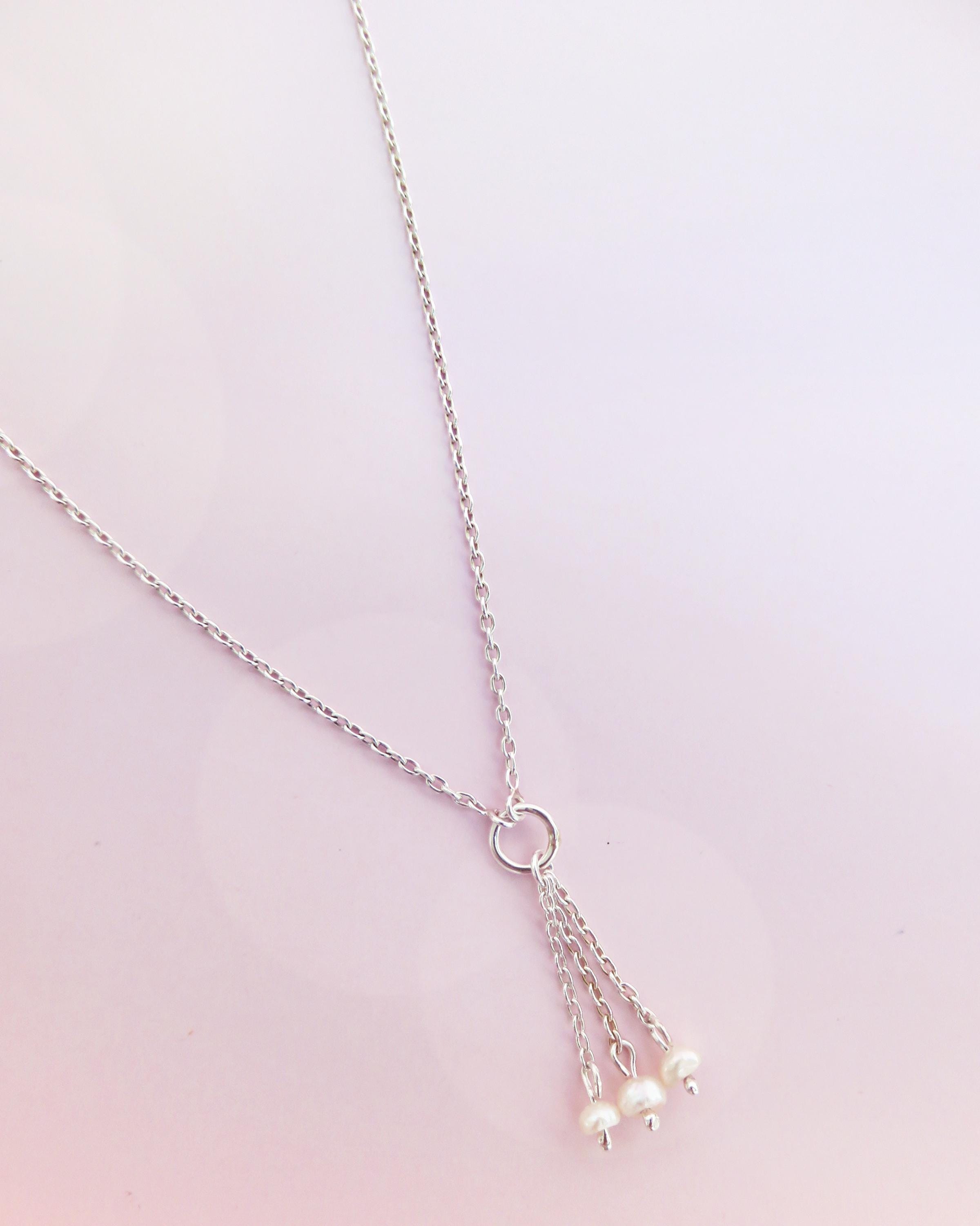 Une chaîne en argent 925 vient se rejoindre sur un anneau central, duquel tombent trois fines pendeloques.
