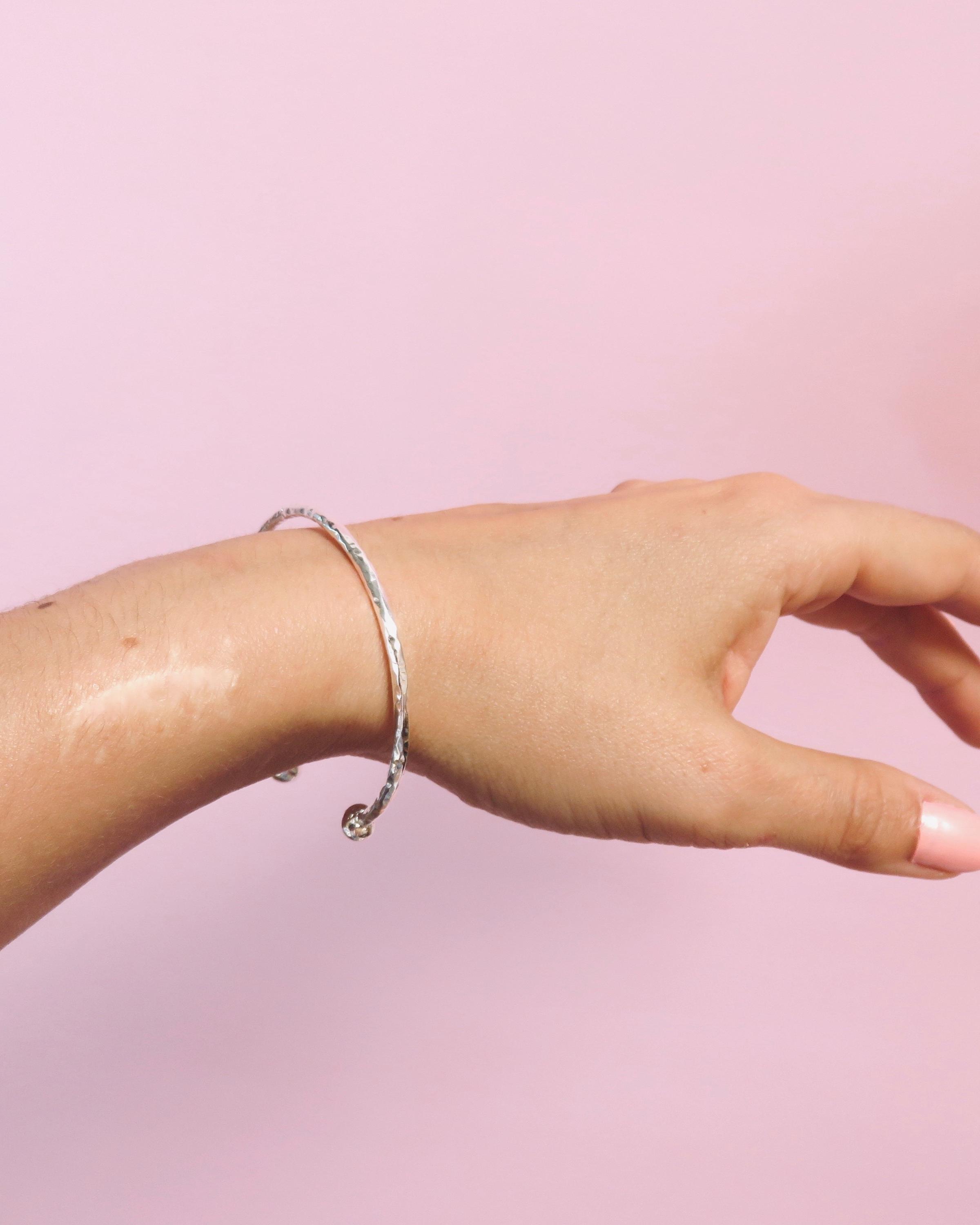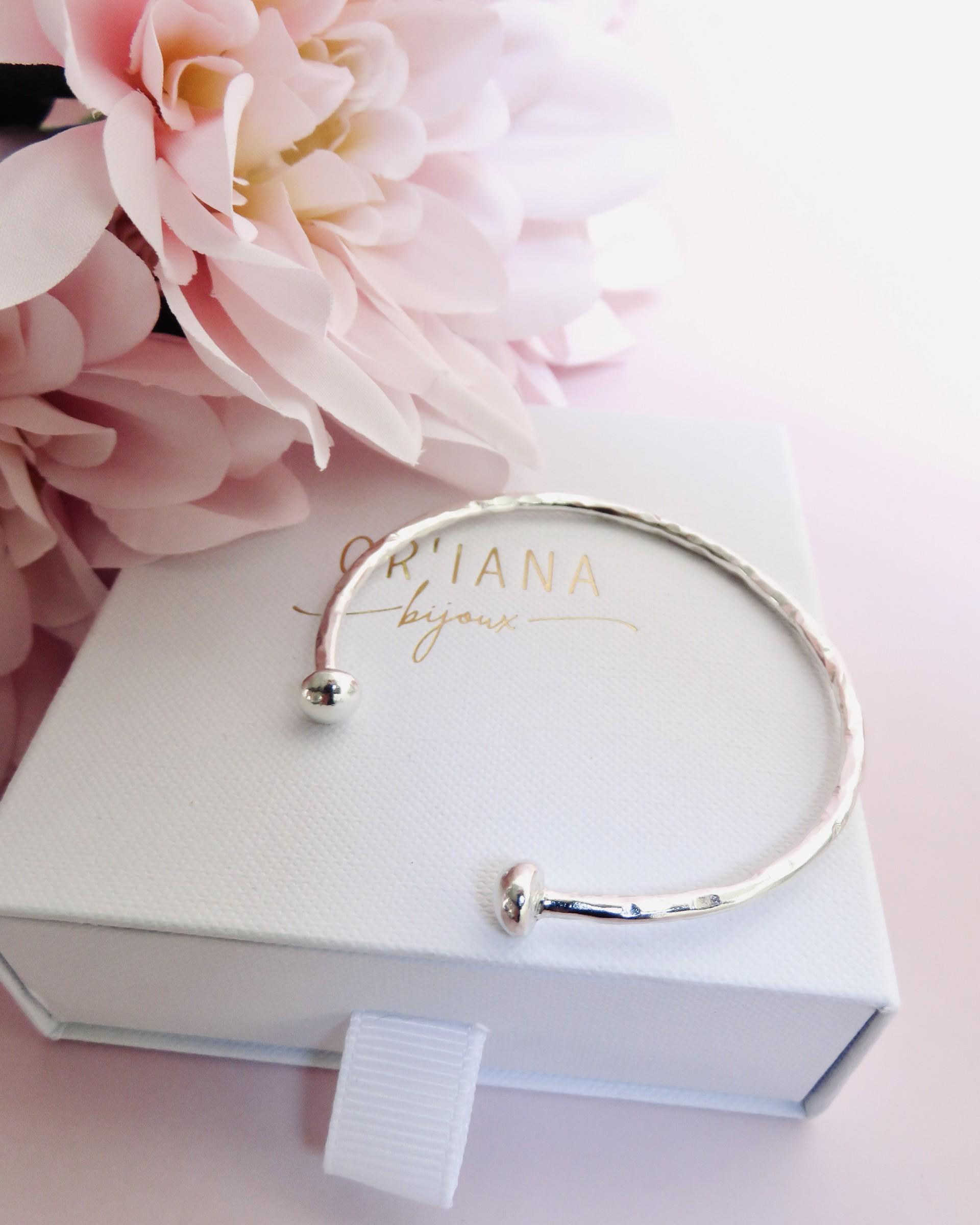 Le jonc Andromaque de la collection Mondes Antiques en argent 925, confectionné à la main dans mon atelier.