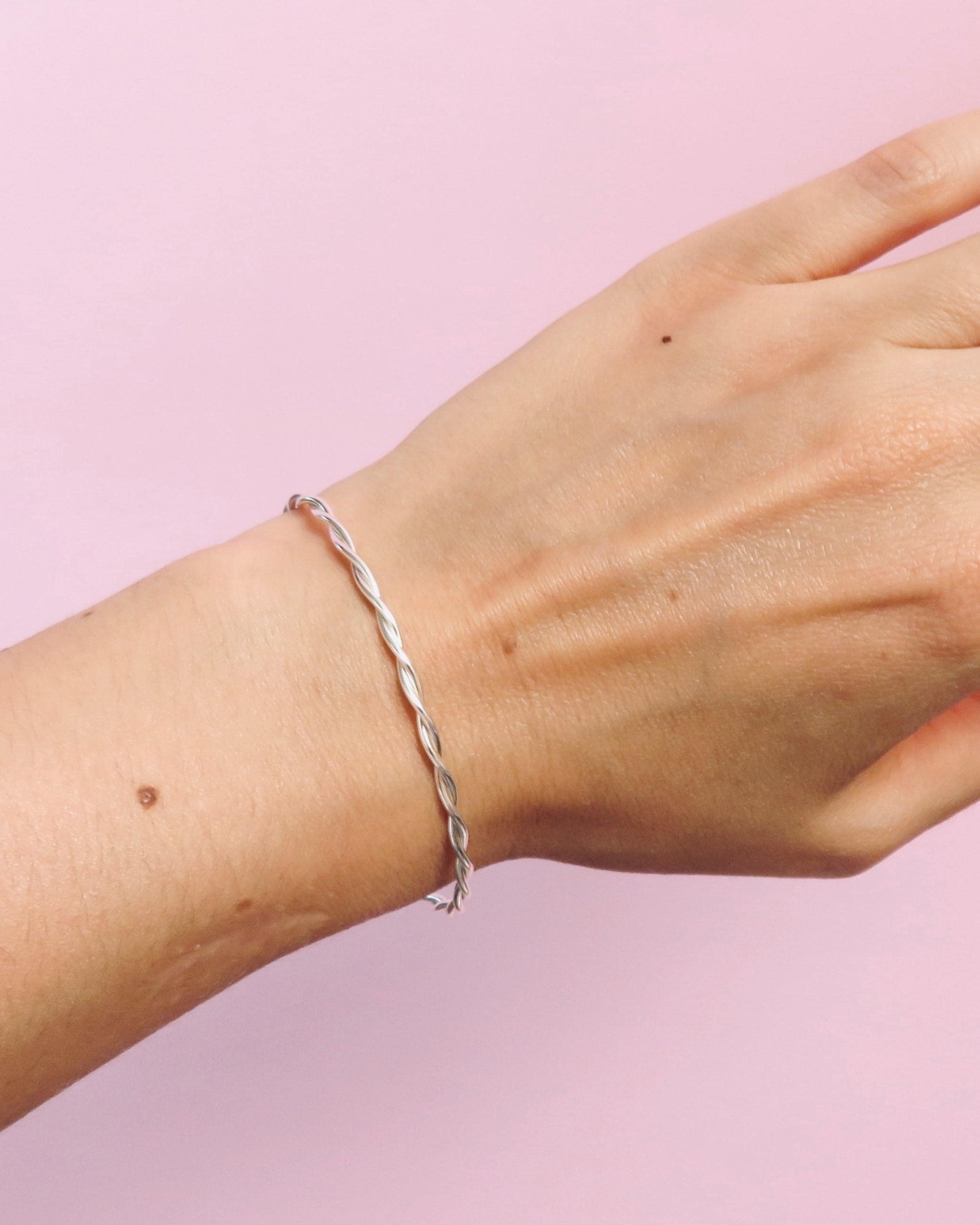 Le jonc Briséis de la collection Mondes Antiques en argent 925, confectionné à la main dans mon atelier.